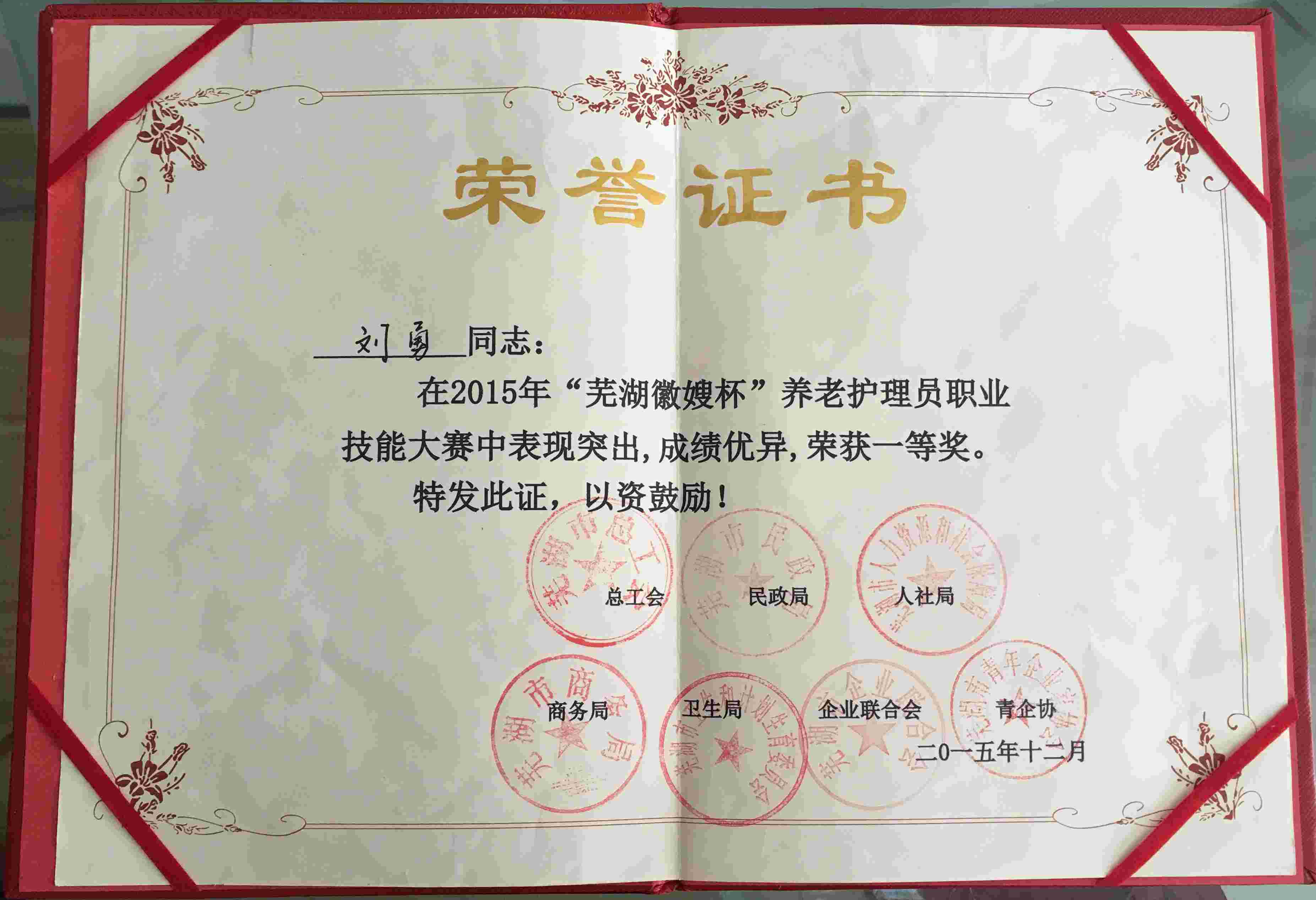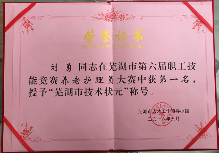 恭喜劉勇同志被授予“蕪湖市技術(shù)狀元”稱號
